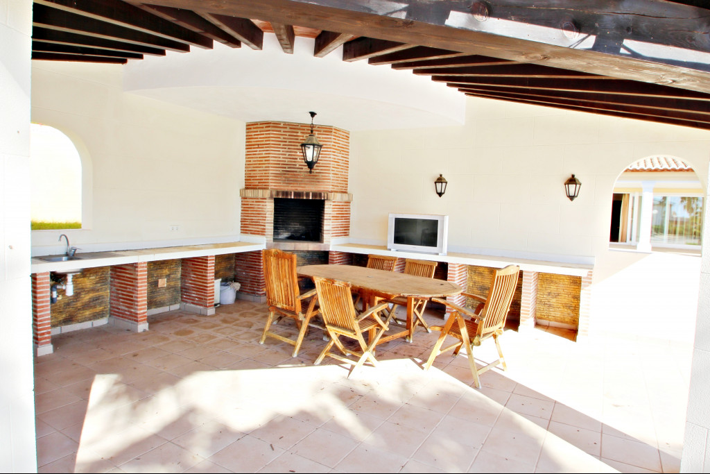 Villa Solpark offers the possibility of parking for 2 cars, as soon as we access it, we find a beautiful terrace, a large, covered barbecue and an extensive pool, all surrounded by a wonderful Mediterranean and tropical garden with grass.