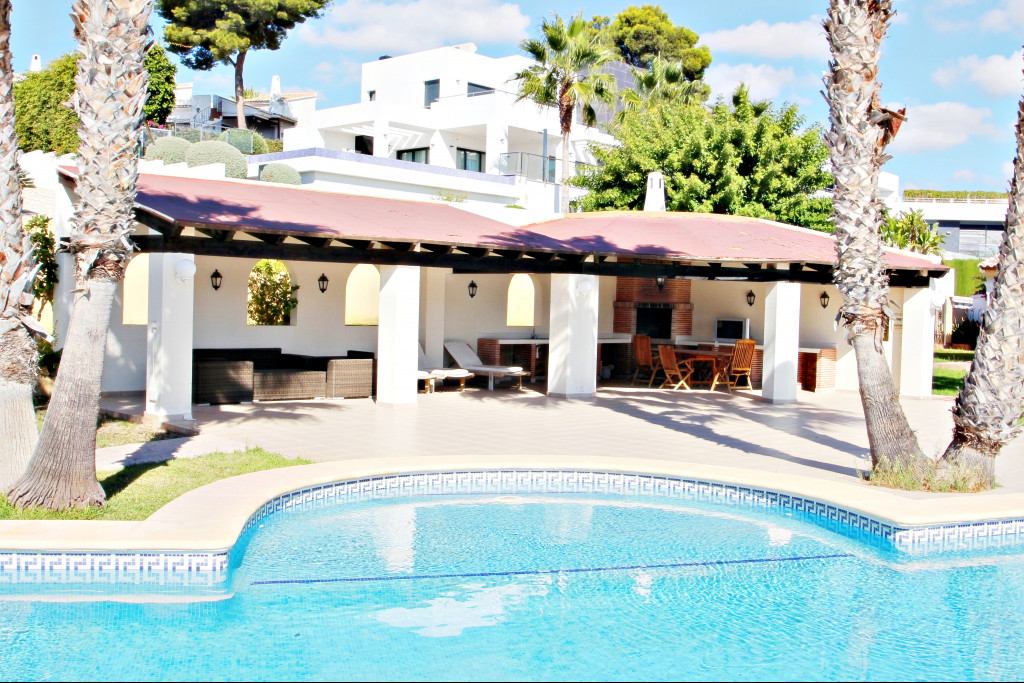 Villa Solpark is a villa with 5 bedrooms, 5 bathrooms, a large fully equipped open plan kitchen, dining room, a spacious living room with access to the pool terrace and the garden, a beautiful, rounded pool 12 x 6m approx., Covered barbecue with a nice chill-out next to the pool and the beautiful garden with lawn and tropical trees.