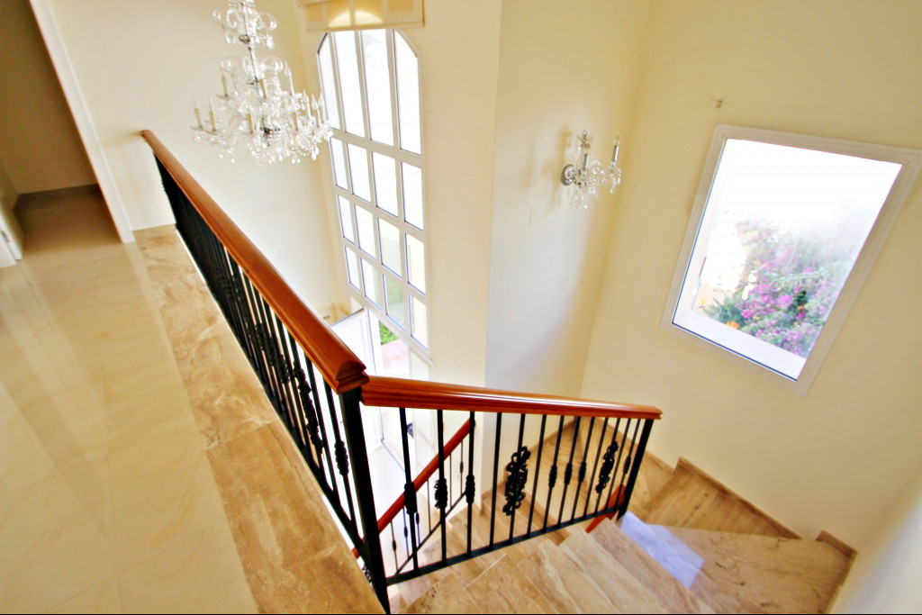 On the upper floor connected by beautiful internal stairs, we find 2 bedrooms with 2 bathrooms in a suite. The master bedroom in addition to its bathroom in suite, has a nice balcony of 4 x 5m approx., With beautiful, panoramic views, sea views and views to the garden and the pool. On the ground floor, we find a room and a bathroom not finished and a living room and a dining room.